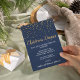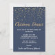 This minimalist modern|blue confetti christmas dinner invitation is perfect for a classy Christmas or holiday supper celebration. The design features festive gold confetti with elegant gold and white calligraphy on a blue background.