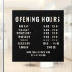 Display your business hours with style and clarity using this minimalist black window cling. Designed with clean, modern typography on a sleek black background, it adds a professional touch to storefronts, salons, studios, offices, or boutiques. Easy to apply and remove, it’s perfect for glass doors and windows. Customize with your operating hours and business name to create a branded, polished look that welcomes every customer.
