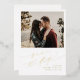 Elegant minimalist modern chic script design and timeless serif font in real gold foil, with couples photo, simple and clean. Great save the date cards for romantic minimalist wedding, modern classic wedding, simple luxury wedding.