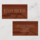 Classy wood look business cards for professionals. Suitable for many professions such as consultants, architects, real estate agents, lawyers, accountants, executive managers, writers, etc. Front has brown, elegant mahogany wood look pattern background with centred personalized name and professional title in brown and black lettering. Back has matching woodgrain pattern. Text template contains business contact details, including social media accounts, such as linkedin and Facebook. Fill in the template with your own business information. Feel free to change or add to the text information. Note: All images are printed. Not actual wood. Other custom, modern professional business cards are available in our Zazzle.com/angela65 shop.