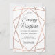 This stylish evening reception wedding invitation features a faux rose gold, geometric design on a sharp white background.