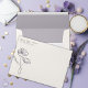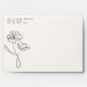 Wedding Envelope | A timeless buff beige backdrop sets the tone, while a delicate line art flower graces the design, its petals adorned with gentle dabs of dusty plum violet spot colour, adding a subtle touch of nature's beauty. The unique touch of text arranged perpendicularly adds a modern twist to the classic layout, promising an event that balances tradition with contemporary aesthetics. - artwork by ©WhimsicalArtwork™