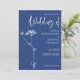 Modern minimalist and simple design. Modern blend of simple handwritten typography in white, beautiflul galactic cobalt background and adding to it subtle floral touch - sketch of Queen Anne's Lace. You can personalize the wording, font style, colour and size of this invitation card. Match items available in collection