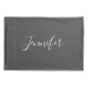 Both sides are modern designed with a customizable dark grey background and personalized with name in white trendy handwriting script letters. Click personalize template option and follow the prompt.
