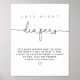 Minimalist Modern Late Night Diapers Game Poster. Matching items available.