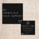 Avec un design élégant en noir et blanc, ces cartes offrent de l'espace pour la marque et la signature de votre logo, créant ainsi un look cohésif et moderne. Parfaits pour les petites entreprises, ils vous permettent d'express de gratitude pour le support client, d'inclure un message de réduction, ou les clients invitations à se connecter sur les médias sociaux. Grâce à ces cartes, il est facile de transformer un simple remerciement en un geste significatif, en bâtissant fidélité et confiance avec chaque ordre. Créez une expérience client polie - customisez la vôtre dès aujourd'hui !
