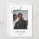 Celebrate your graduate in style with this minimalist graduation announcement featuring a bold photo layout, handwritten script "Grad" overlay, and customizable name, school, and class year. Perfect for high school or college graduates who want a clean, modern, and sophisticated design.