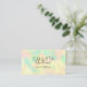 This modern, chic, elegant, and simple business card is perfect for any makeup artist, hairstylist, aesthetician, aesthetician, or beauty salon. It features a minimalist and girly rainbow colour scheme (yellow, green, blue, pink) holographic iridescent abstract background and includes your business information on the back. It's an excellent way to advertise and spark new business. The design includes a black handwritten signature script typography. It's elegant, cool, unique, trendy, and stylish; the perfect card to attract customers.