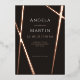These uber minimalist modern 5"x7" wedding invitations features a sleek rose foil line design on a black background with placeholders for the wedding couple first names, date, time, venue, venue address and reception.