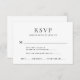 Minimalist Wedding RSVP depicts modern black text on a white background. They feature accepts, declines, number attending and meal choices.
