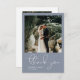 Minimalist Modern Script Photo Simple Blue Wedding Thank You Card