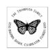 This design features Fish nature self-inking stamps, a simple return address script, with modern elegant minimalist calligraphy, a business family typography, with a modern minimalist style return address, a botanical create your own professional style, a fancy whimsical script font, with formal stylish surname family name, classic chic new home housewarming, with fish nature botanical Butterfly