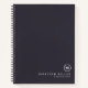 Shown with a custom name and monogram initial on the front in modern typography, this personalized business notebook is designed with custom text. You can customize by changing the text using the fields provided, or use the "contact this designer" button for help.