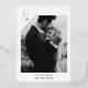 This simple and modern design features a monochromatic colouring with the couple’s initials on the top left corner and wedding date below the couple photo of the back of the wedding invitation. On the front, add your wedding invitation information and your initials which can be seen behind the names of the couple for a modern look.