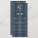 Minimalist Monogram Striped Indigo Blue Wedding Menu