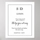 A template for a modern minimalist monogram wedding bathroom sign that can be changed and printed at home. This restroom sign has a black border and a basic initial monogram.