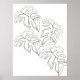 Minimalist Monstera Hand Drawn Gesture Black White Poster