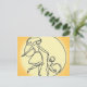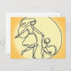 Here is a cheerful and minimalistic Mother's Day postcard design, featuring a playful single-line drawing of a mother twirling her child around. The design is executed in a continuous line art style against a bright, vibrant background color, enhancing the joyful and lively mood of the illustration. This unique and artistic design is perfect for those looking for a fun and modern way to express their love on Mother's Day.