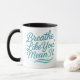 Breathe Like You Mean It" – A gentle reminder to slow down and embrace the present moment. This minimalist mug features flowing modern script typography in a calming sea blue gradient, accented with wavy underline strokes that mimic air currents or gentle waves. Floating dots and subtle sparkles add a touch of serenity, making it a perfect drinkware piece for meditation spaces, offices, or cozy home interiors. Designed with a clean, vector-inspired aesthetic and a transparent background, this mug blends effortlessly into any environment. Ideal for mindfulness enthusiasts, yoga practitioners, and anyone seeking a peaceful atmosphere. Makes a thoughtful gift for wellness lovers and those who appreciate elegant simplicity.