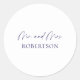 Celebrate love in style with this elegant "Mr. & Mrs." sticker, featuring a clean white background and deep navy typography. The minimalist and modern design makes it perfect for sealing wedding favour boxes, gift bags, or adding a refined detail to your event stationery. A simple yet meaningful touch for weddings, bridal showers, anniversaries, or romantic celebrations.