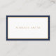 Create your own custom business cards with elegant chic typography name and border design in navy blue and gold color.