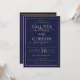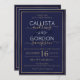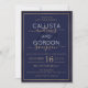 This modern and simple wedding invitation is perfect for the contemporary couple. It depicts a faux printed pinstripe double gold border with dark navy blue filling on top of a lighter navy blue background. The text is an elegant and chic feature of this trendy invitation. It's pretty, chic, and minimalist!