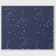 A modern, minimalist gift wrapping paper featuring white twinkling stars on a deep navy background. Elegant and stylish.