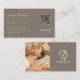Elegant minimalist square business card featuring a soft beige and taupe neutral palette with a modern QR code layout. Designed for beauty, skincare, spa, and wellness professionals, this card allows clients to instantly access your website, booking page, or social media. Fully customizable with your logo, name, and contact details for a polished, luxury brand look.