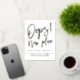 Oops! New plan, Modern fun casual script wedding change the date with a hand written style typography in real gold foil, with simple and minimalist white to announce the postponement of your wedding and new plans