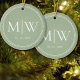 Minimalist Newlyweds Monogram Sage Green Holiday Ceramic Ornament