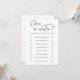 Over or Under Bridal shower activity card featuring a minimalistic design with calligraphy. Customize with your questions if desired.