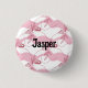 Minimalist pattern in purple, pink and white shades, design with leaves, doodle dots and waves. Personalized Button.