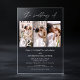 Minimalist Photo Elegant Modern Wedding 3 Photo Acrylic Invitations combine simplicity with sophistication, presenting four cherished photos on a sleek, clear acrylic backdrop. This contemporary design merges personal memories with an elegant layout, allowing couples to showcase moments together while inviting guests in a unique, visually striking way. The minimalist style and clean lines complement any wedding theme, offering a polished, lasting impression. Ideal for modern couples, these invitations blend personalization with elegance, perfect for a wedding celebration filled with love and timeless style.