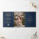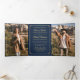 Minimalist Photo Navy Blue Gold QR Code Wedding Tri-Fold Invitation