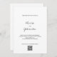 This wedding invitation features a clean and minimalist design with a white background, modern typography, and handwritten-style script for the couple’s names. The front emphasizes simplicity and elegance, while the back showcases a black-and-white photo of the couple framed by a white border, adding a personal and contemporary touch.