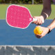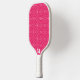 This modern pickleball paddle design features a pink with white sparkle pattern background, with your initial in bold white text for a look that is simple and stylish, yet professional.