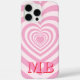 Pink Minimalist Modern Initial Monogram Phone Case. Create your own personalized iPhone Case with custom initial name and repeating heart shape pattern.