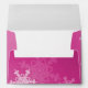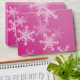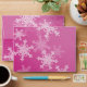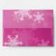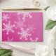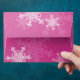 Lovely, modern and trendy festive pattern with white snowflakes on a pink background. It features a pink background and is adorned with white snowflake pattern that cover its surface. The snowflakes are detailed with fine lines, creating an intricate lace-like effect. The overall style is charming and joyful, with a clear holiday theme. Perfect Christmas envelope for Christmas cards and Christmas party invitations