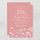 Simple Wildflower Boho Baby Shower Invitation. Perfect for spring through autumn celebrations, this minimalist design features a pink background on both the front and back for a soft, cheerful, and timeless look. A simple white outline wildflower art border sits along the bottom, creating a clean pink-and-white palette that feels elegant, modern, and subtly cute.