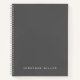 Modern notebook features a minimal design in a gray color palette. Custom name presented in the lower third in stylish simple font.