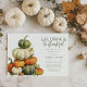 Invite friends and family to join in with the family for a thanksgiving feast with these simplistic pumpkin themed fall thanksgiving invitations. Featuring delicate watercolor pumpkins in shades of cream, green and orange over a crisp white background and an modern invitation template that is easy to customize.