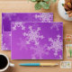 Lovely, modern and trendy festive pattern with white snowflakes on a purple background. It features a purple background and is adorned with white snowflake pattern that cover its surface. The snowflakes are detailed with fine lines, creating an intricate lace-like effect. The overall style is charming and joyful, with a clear holiday theme. Perfect Christmas envelope for Christmas cards and Christmas party invitations