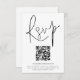 Minimalist QR Code Script Wedding RSVP Card. A convenient option enclosure to ask your guests to scan your QR code to your wedding website to RSVP. A stylish set typography in black for the main heading RSVP complementing the rest of the text which you can easily personalise.