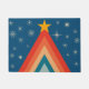 Minimalist Red & Blue Retro Groovy Christmas Tree Doormat