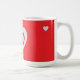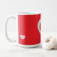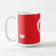 Elevate your morning routine with this chic, red-on-red heart mug. Featuring a clean and modern graphic design, this mug is perfect for those who love bold colors and simple aesthetics. A stylish addition to any office desk or kitchen shelf.