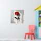 Elevate your living space with this refined botanical art print, showcasing a single red rose in full bloom against a soft, neutral backdrop. Sunlight streaming in from the side casts dramatic shadows of the velvety petals and serrated leaves, creating depth and visual intrigue. This minimalist composition combines romance and elegance, making it a perfect focal point for modern interiors, bedrooms, or offices.