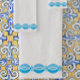 It was advertised as NAVY blue and the color sent was greenish blue. I am disappointed in this product. Quality and printing are great as are all my other orders. As you can see in picture the tea towel on right is perfect, hand towel not so much! Print was awesome and just as ordered