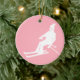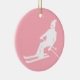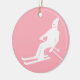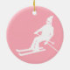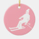 Minimalist Retro Skier Winter Pink White Ceramic Ornament