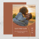 Save the date in style with these modern and glamourous save-the-date cards. Your photo appears alongside large ring against a muted, minimal backdrop. The details of your wedding date appear in formal serif font.
