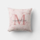 Minimalist Rose Gold Pink Marble Monogram Throw Pillow